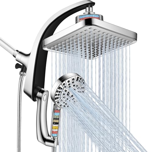 Filtered Shower Head with Handheld,2-IN-1 High Pressure Rain Shower Heads with 10-Setting Handheld Spray Combo,Water Softener Filters Beads for Hard Water – Remove Chlorine – Reduces Dry