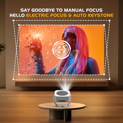【Built-in Apps】Android Smart Projector with Electric Focus & Auto Keystone, Native 1080P Movie Projector with WiFi and Bluetooth, 270° Rotatable Portable Outdoor Projector for Phone/Laptop/HDMI/USB