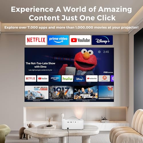 [Netflix Officially Licensed, Enjoy a Global Feast of Entertainment] Step into a world of endless entertainment with the L61 Pro portable projector. It offers the ultimate viewing experience right out of the box. Unlike unauthorized Android TV projectors, this video projector offers one-click access to top streaming platforms such as Netflix/YouTube/ Prime Video/Disney+/Apple TV/Live TV, without extra devices needed. Thanks to a vast library with millions of videos your favorite shows and movies are always at your fingertips. The Netflix team regularly maintains and updates the app to ensure you have the latest features, while also providing comprehensive security and stability