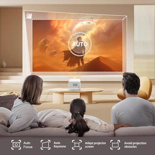 【Automatic projection adaptation】Completely free your hands and solve the difficulty of projection adjustment.Projector supports Auto Focus, and Auto Keystone correction, and also supports Adaptive screen and Auto obstacle avoidance.Perfectly adapts to the projection needs of various locations to create an exclusive projection space.