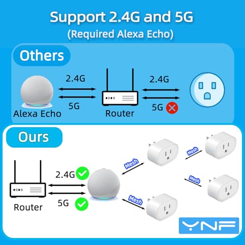 Network connection requires Echo, a range of Echo can connect seamlessly to the YNF smart plug via BLE Mesh— Echo (2nd Gen and newer), Echo Dot (2nd Gen and newer), Echo Plus, Echo Show, Echo Studio, and more.