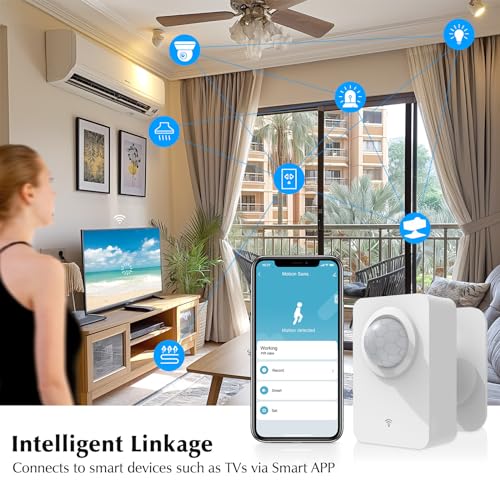 eMylo WiFi Smart Motion Sensor, PIR Motion Detector, Infrared Sensor with APP Real-time Push, 128° Detection Range, USB & Battery Dual Power Supply, Compatible with Smart Devices for Smart Linkage