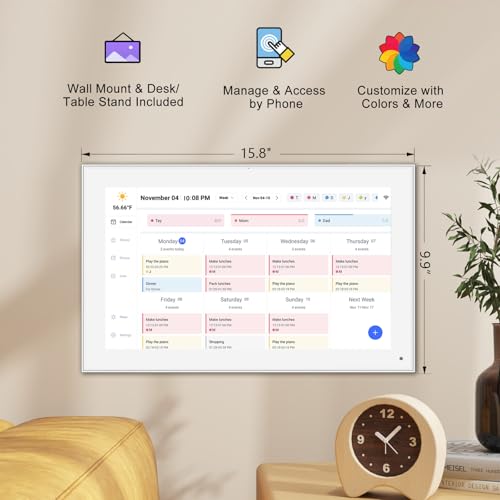 15.6 inch Smart WiFi Digital Calendar & Chore Chart, 1920×1080 FHD IPS Touch Screen Display for Family Planner, Smart Light Sensor, Wall-Mounted, Share Moments Instantly from Anywhere
