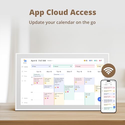 【Easy Setup and Auto-Sync】: Enjoy a user-friendly design that our smart picture frame allows for quick setup—just plug in, connect to Wi-Fi, and link your calendar to the Mobile App. Once synced, it seamlessly integrates multiple personal calendars (iOS, Google, etc.) into one unified interface. Authorize additional devices for even greater convenience.