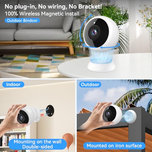 Magnetic Security Camera Wireless – 2Pack AI Motion Detection, 2K HD Video, Battery Powered, Ease of Setup, 2-Way Audio,IR Color Night Vision, Waterproof, Outdoor & Indoor Surveillance