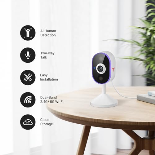 Security Cameras Wireless, Indoor Home Camera with 2-Way Audio, Smart AI Human Detection, Night Vision, Cloud Storage, 2.4G WiFi